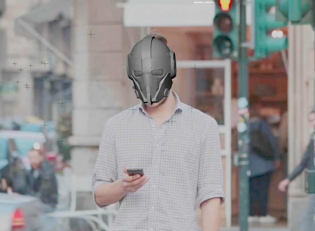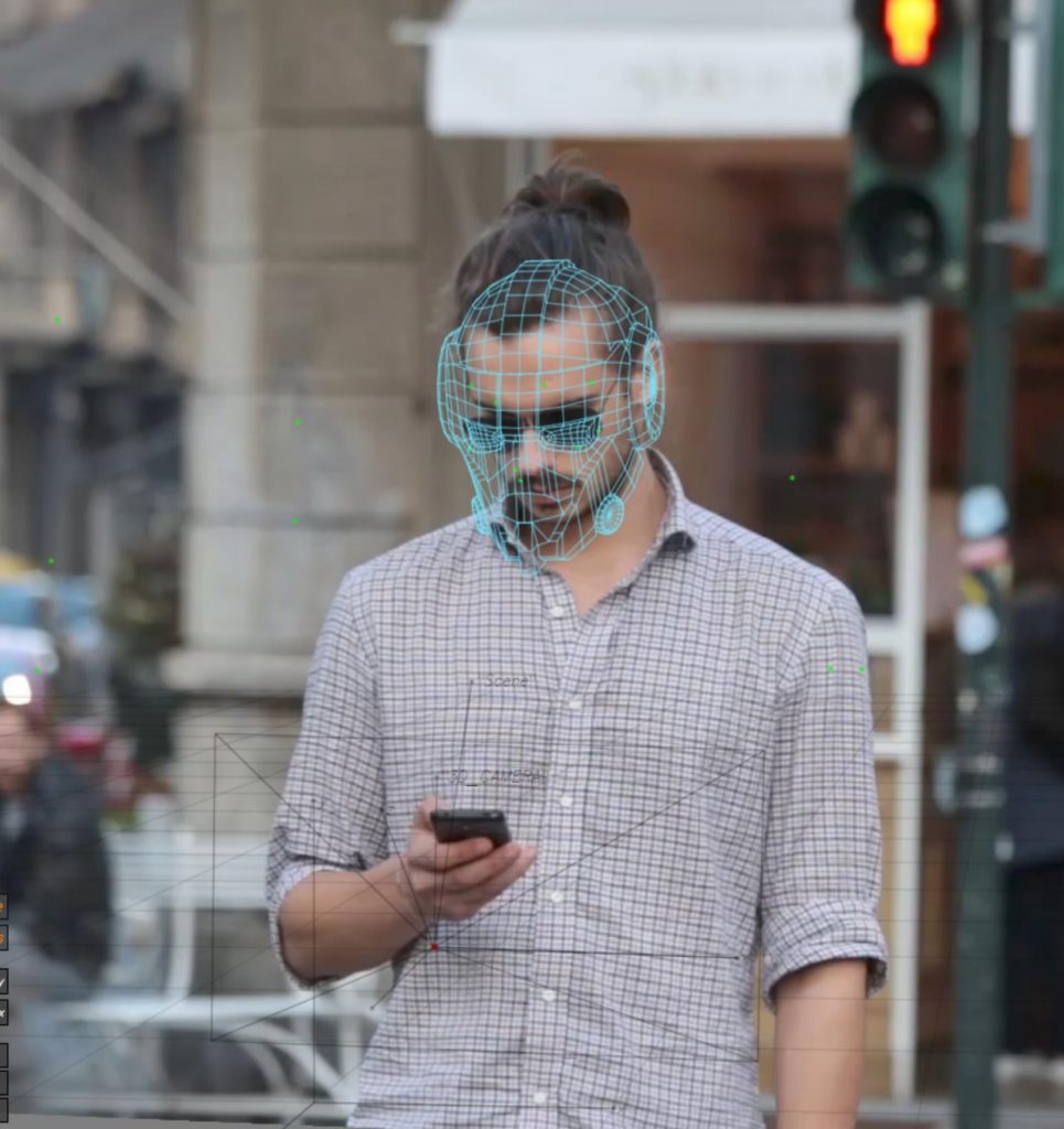 Once the background was set, we moved on to tracking the man’s face. This allowed us to explore more detailed tracking and understand how smaller, more precise points could be used to drive CG elements attached directly to a person, rather than the environment.