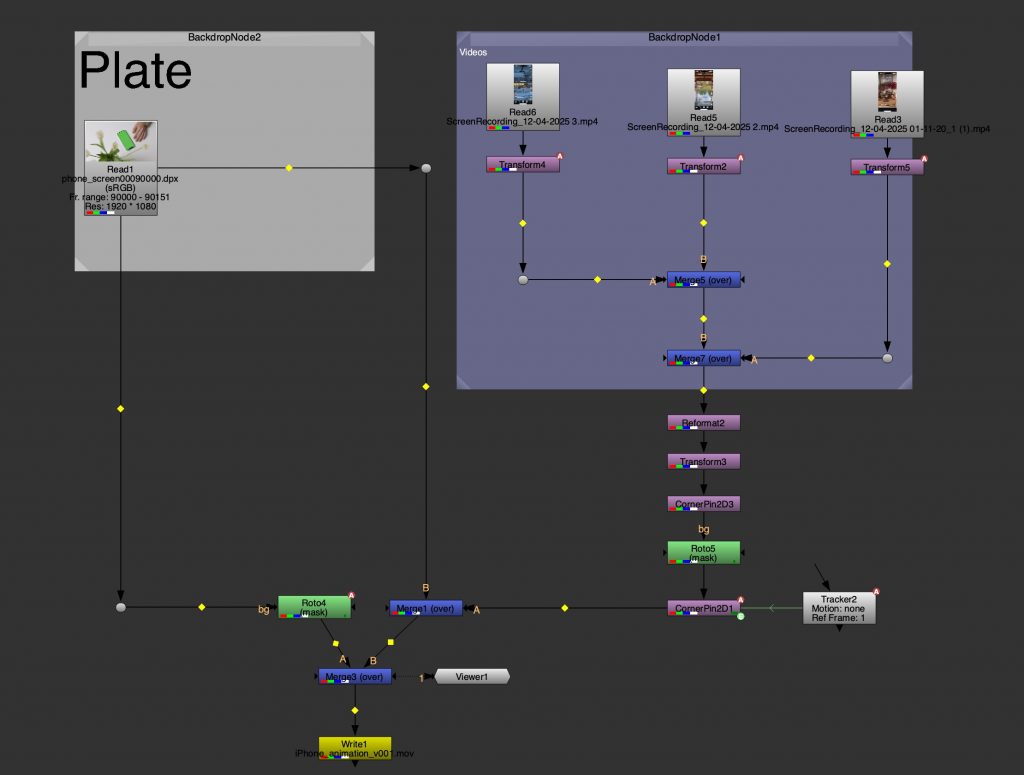 This task focused on combining tracking, animation, and rotoscoping in Nuke through a phone interaction shot. I worked on isolating the hand and fingers while compositing multiple pieces of content onto the phone screen, making them respond to the scrolling movement. The main aim was to ensure that the screen content felt naturally connected to the physical motion of the hand, rather than appearing static or overlaid. This required careful roto work, accurate tracking, and attention to timing so the interaction felt believable. The exercise brought together several techniques learned throughout the unit, including masking, layering, and compositing interactive elements within live-action footage.