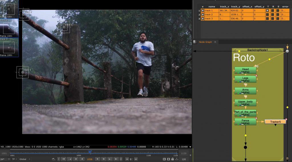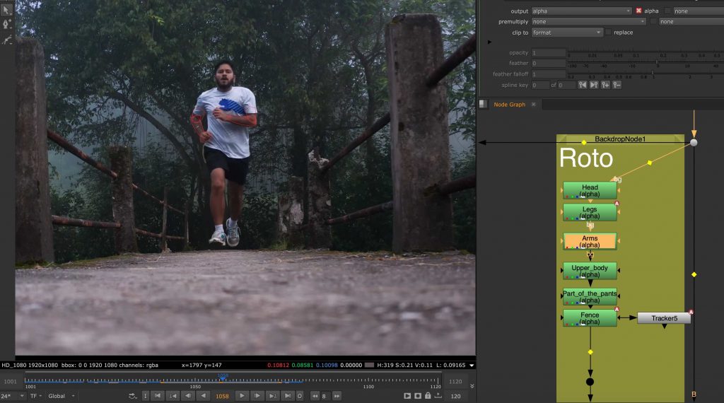 This was my first time rotoscoping and also my first real experience working in Nuke. The task involved isolating a running man from his background using roto shapes. I found this process extremely time-consuming and mentally demanding, as it required a lot of precision and patience. It took me around two weeks to complete, and even then I felt the result was far from perfect. This exercise made me realise how powerful but also intimidating Nuke can be, especially when approaching it for the first time.