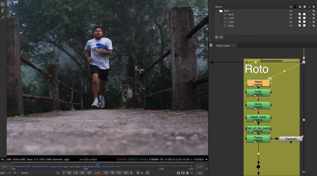 I split the roto into different body parts, and in some cases separated them even more. This approach made the task easier to handle and helped improve accuracy across the sequence.
