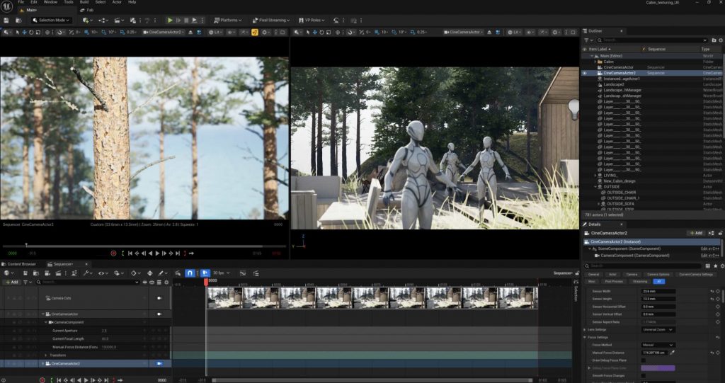 These techniques were first applied during the Cabin in the Woods project and later developed further within my unit assignment. For the final unit project, Unreal Engine became my primary tool, particularly for environment creation, lighting, camera work, and rendering the final sequence.