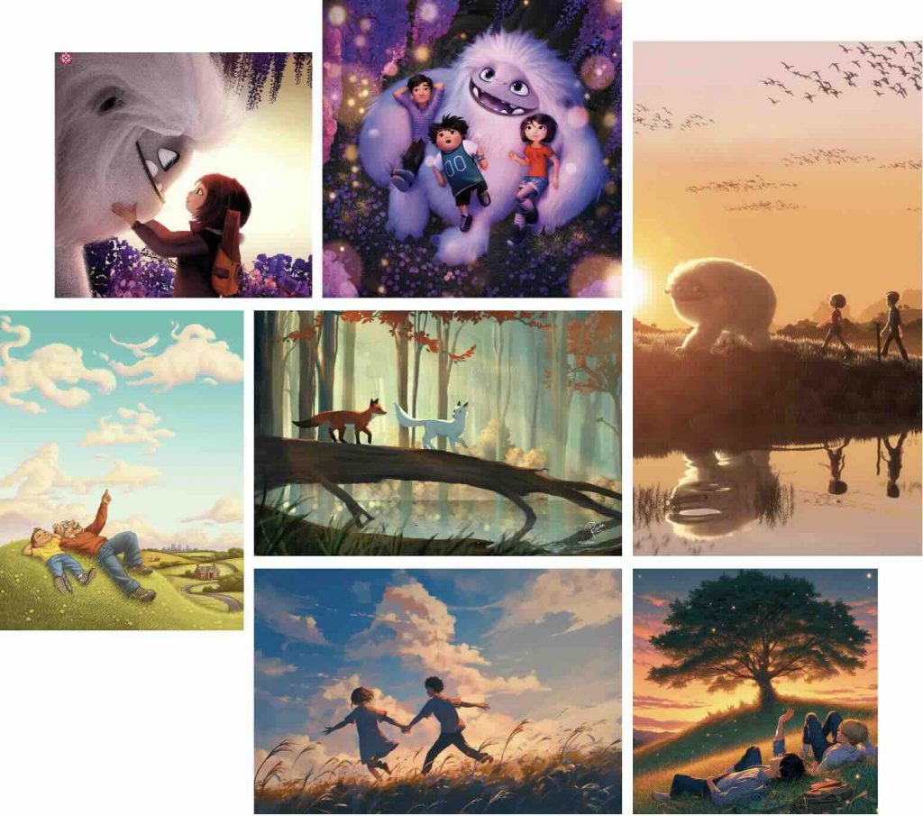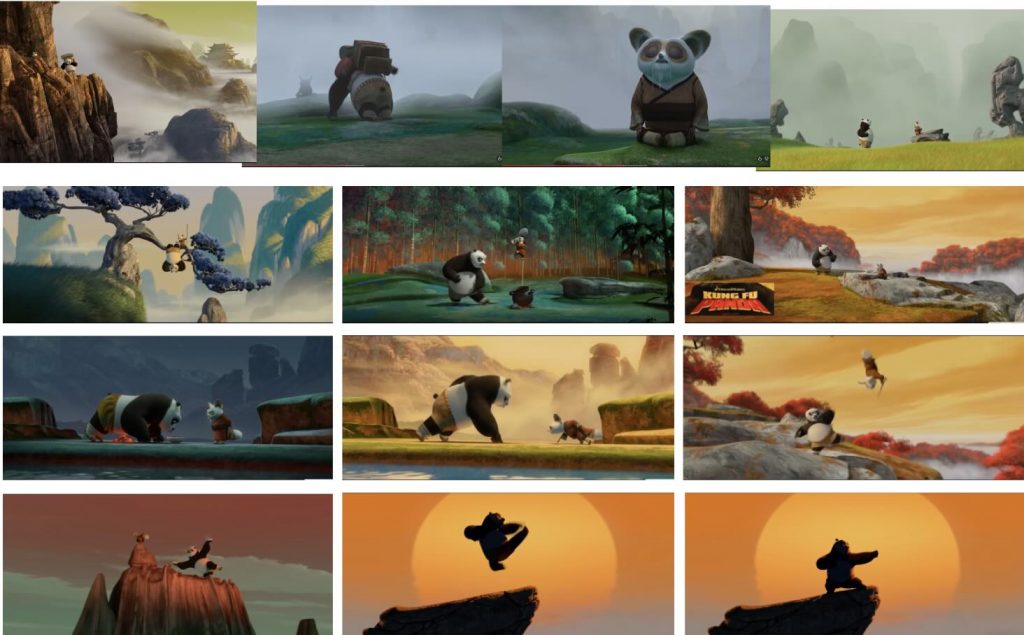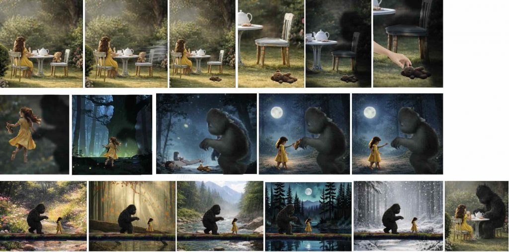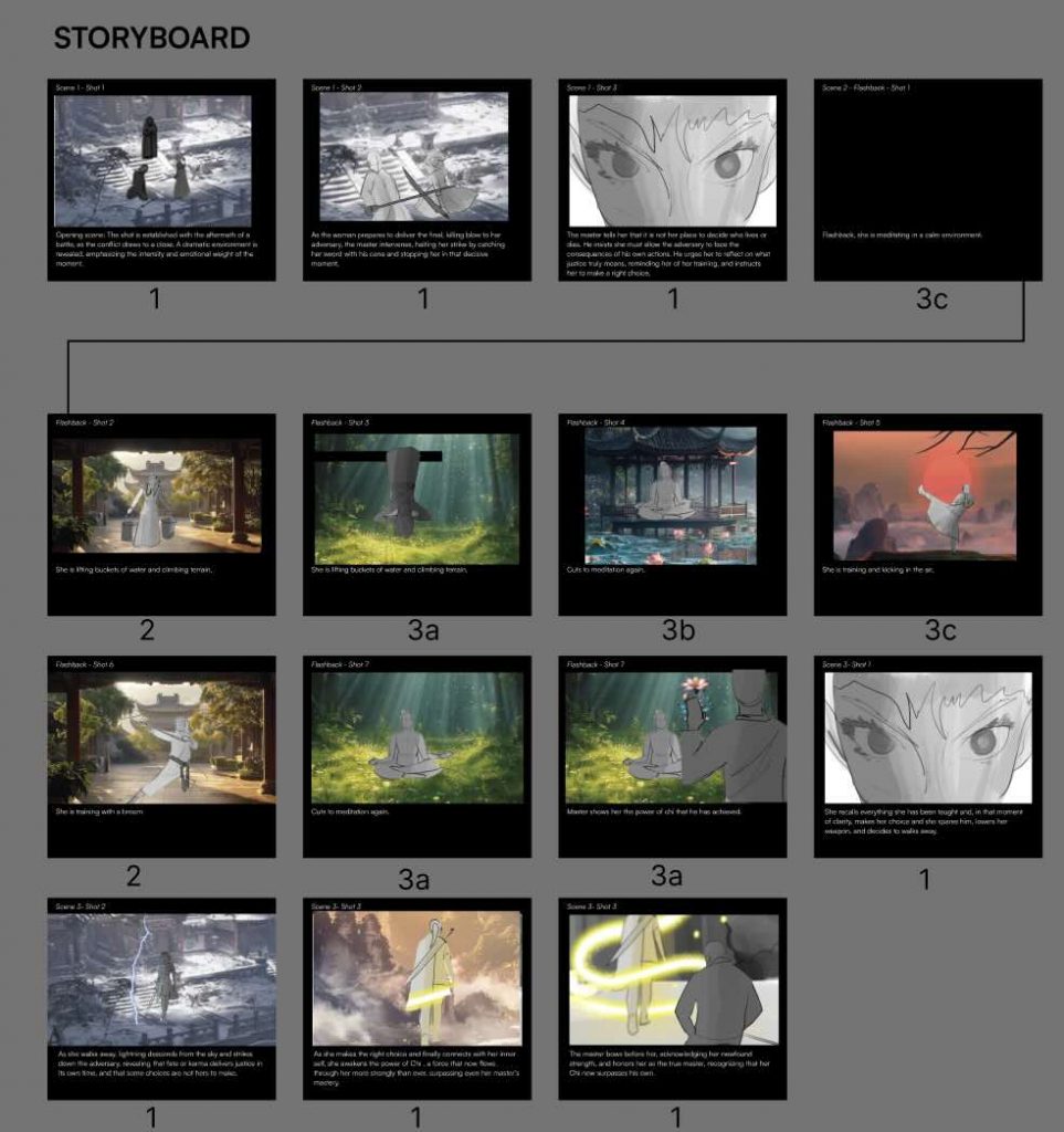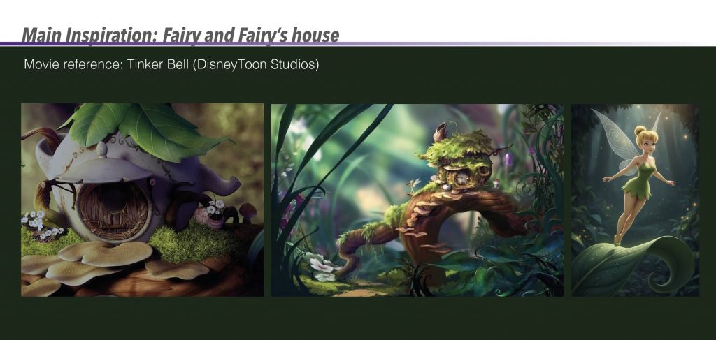Based on this inspiration, I created my own initial storyboard to visualise how the environment and character would interact. The sequence begins with the fairy flying along a river within a forest, surrounded by glowing plants, before gradually revealing the mushroom house. The storyboard originally included interior shots of the house; however, it mainly served as a planning tool for composition, atmosphere, and the overall flow of the scene.
