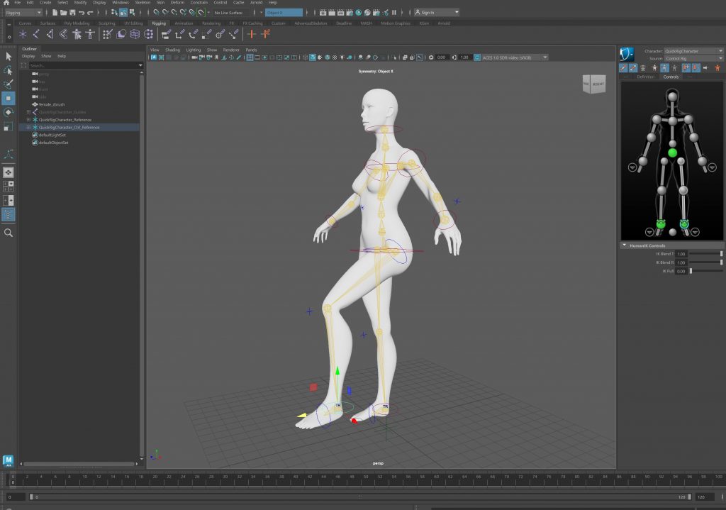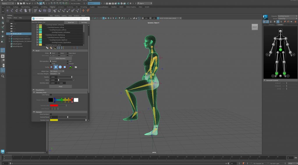 We began by using Quick Rig on the human character as an introduction to character rigging. This allowed us to quickly generate a functional skeleton and understand how joints are placed and connected within a humanoid form. Working with an automated rig helped us focus on observing movement and proportions rather than building everything from scratch, making it easier to grasp the fundamentals of character rigging.