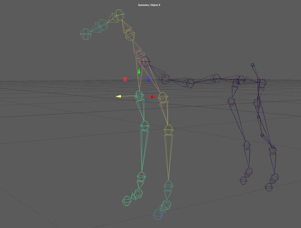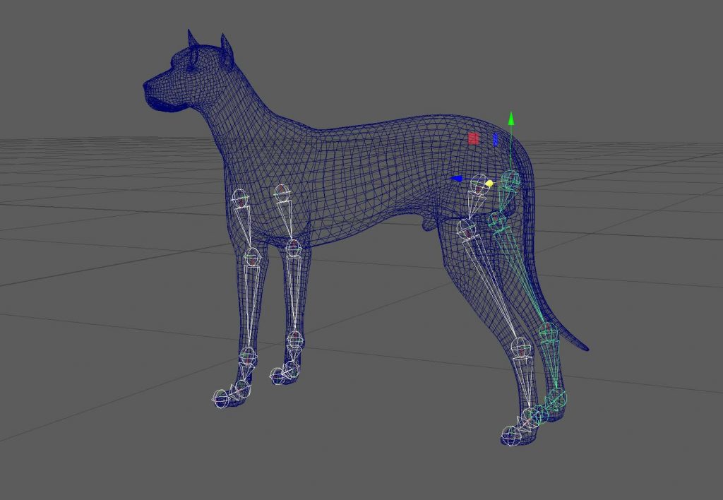 For the dog, we moved away from automated solutions and built the rig manually using Create Joints. This approach required more precision and planning, especially in relation to anatomy and joint placement. We refined the skin weights to ensure the mesh deformed smoothly and added IK handles and basic controllers to make the rig easier to pose and animate. This process gave us a deeper understanding of how rigging works at a structural level.