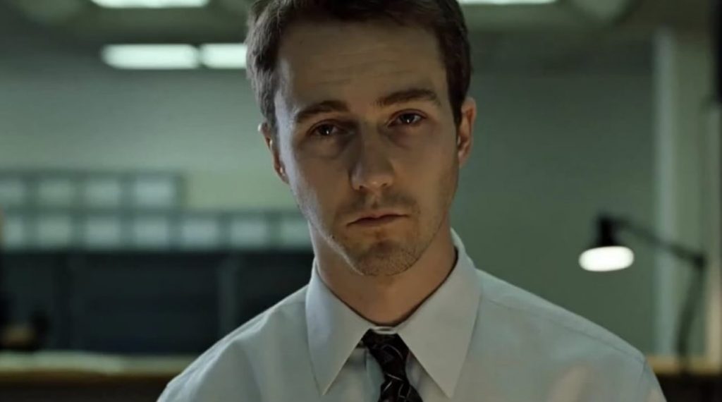 The Narrator (played by Edward Norton) – He is the protagonist and a “Seeker” archetype. His journey is driven by the desire to find truth and meaning beyond the superficial structure of his daily life. He is a dynamic character, meaning he undergoes significant change by the end of the story.